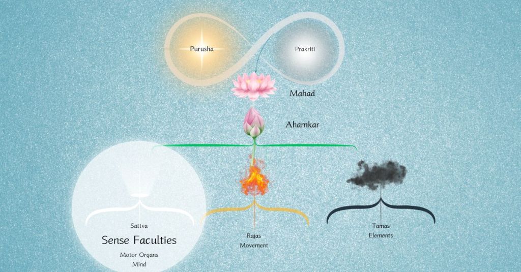 An image of the chart of the sankhya philosophy with senses illuminated.